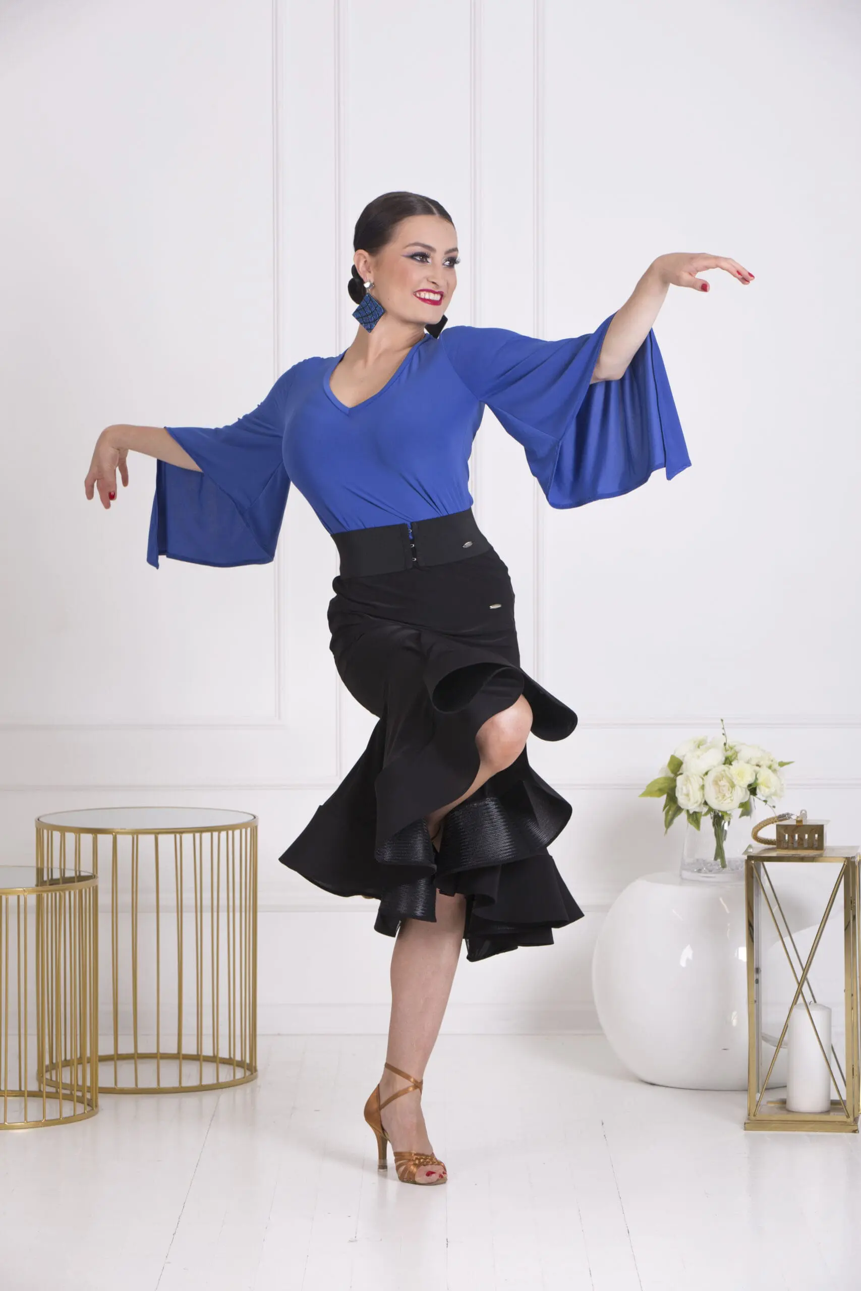 The Lily Blouse is specially designed for Latin American and Standard dance, making it a great choice for active dancers who want to combine style with comfort during every training session.