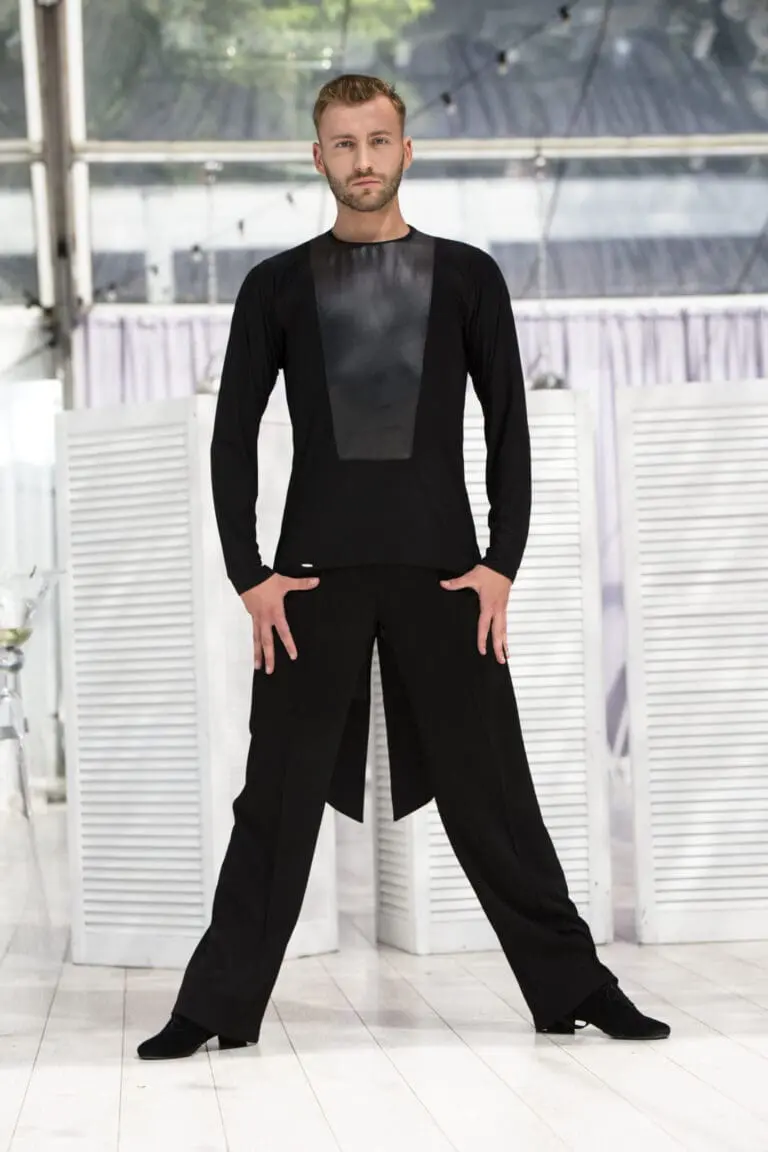 A blouse looks like a tailcoat, finished with elements of ecological leather is our offer for men who appreciate elegant freedom and love to dance in a tailcoat. The longer back of the blouse finished with leather gives it airiness and elegance, while the long sleeves extend the line of the dancer’s hands and give it style. Such an offer of a training shirt patterned with a tailcoat has not been on the Polish market yet. The Trivor blouse is a perfect proposition for both standard and Latin American dances. Bestseller of the year that cannot be missing in your wardrobe!
