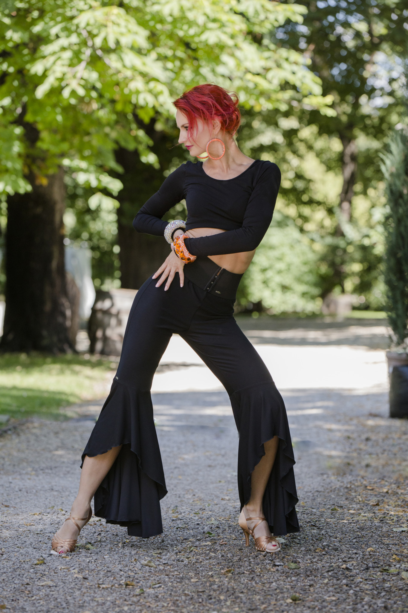Klasyczne, czarne spodnie to stały punkt w szafie każdej kobiety. Pora odrobinę zaszaleć! Spodnie Brando sprawią, że poczujesz się wyjątkowo. Fason spodni został tak zaprojektowany, aby spełnić największe oczekiwania najbardziej wymagającej tancerki. Krótszy przód spodni wydłuża i podkreśla nogi, natomiast dłuższy, lekko rozszerzony tył pięknie układa się podczas tańca. Spodnie Brando wybierają tancerki nie tylko na trening, ale również chętnie wykorzystują je w swoich codziennych stylizacjach.