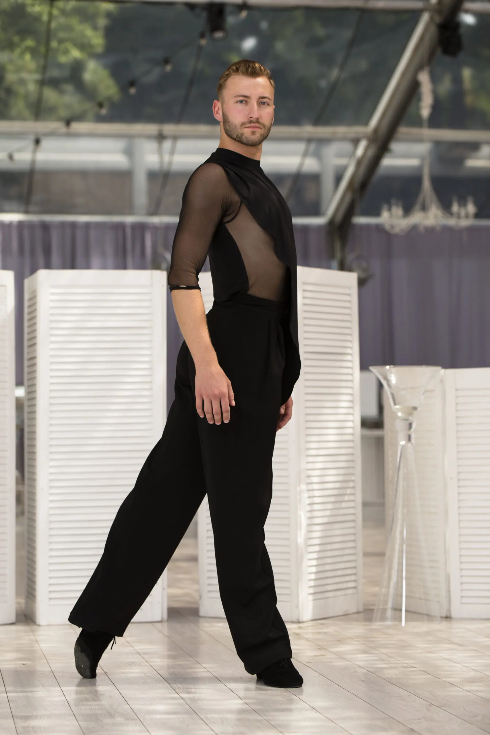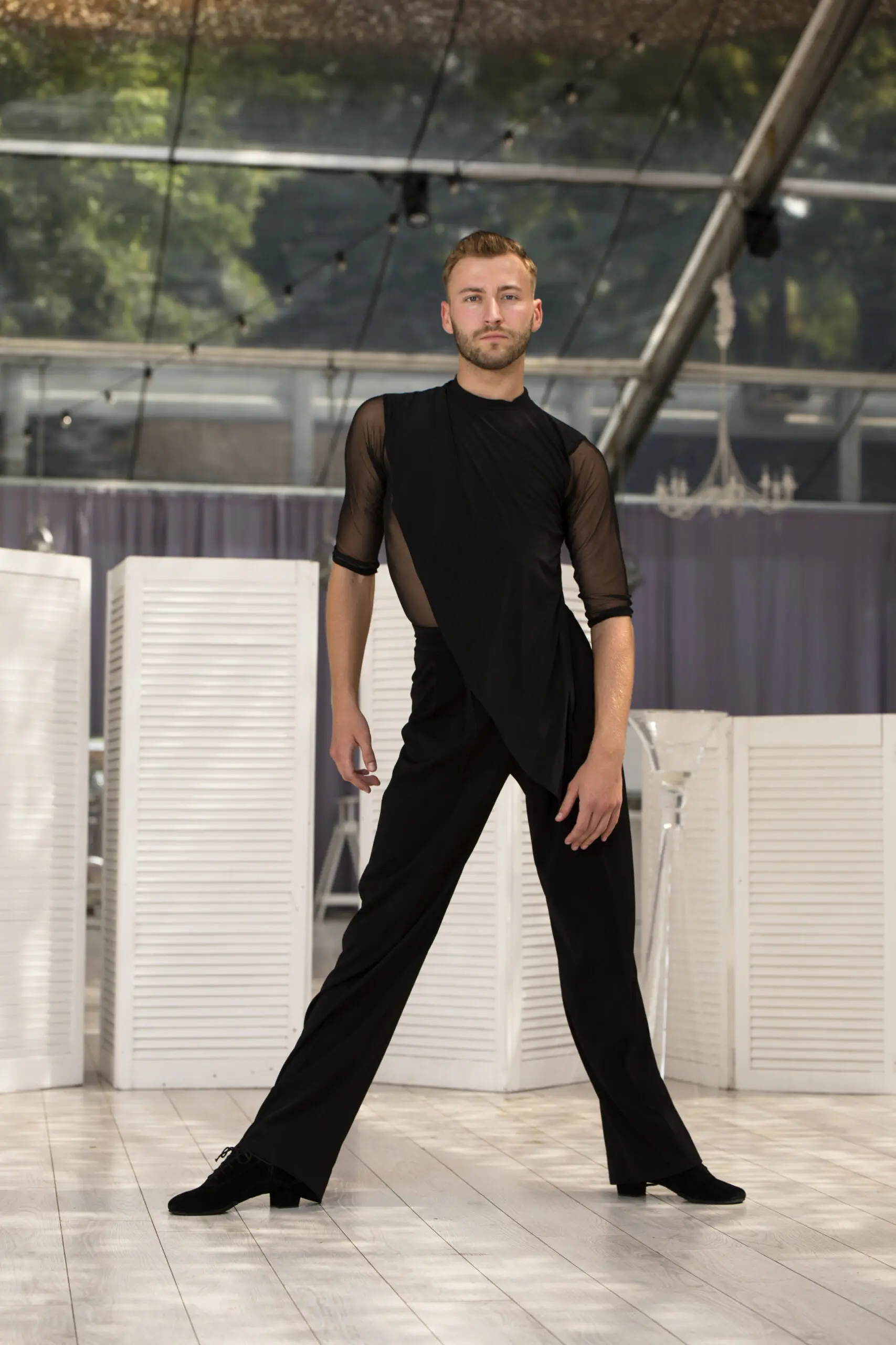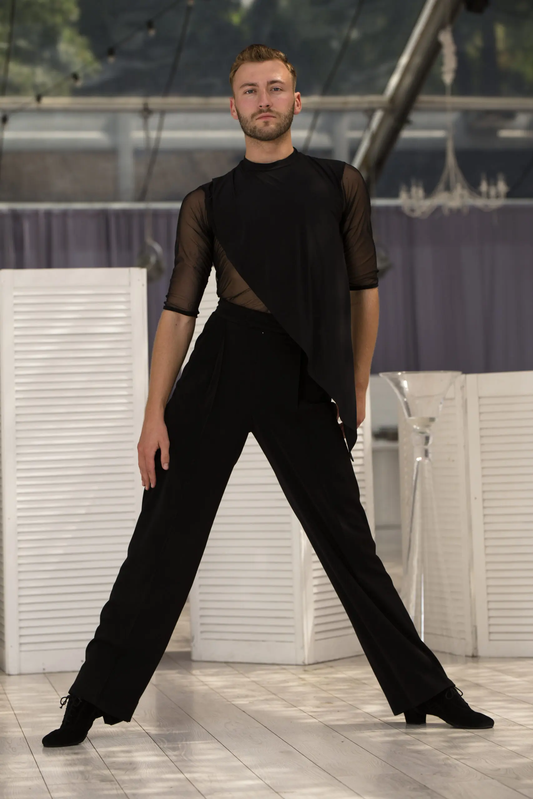 Bardzo oryginalny krój bluzki z luźno wszytym materiałem to idealne rozwiązanie dla każdego tancerza. Bluzka ma rękawy z siatki oraz podstawę przodu koszulki. Dodatkowym elementem jest luźny materiał, który podkreśla ruch w tańcu. Shispare jest również idealną propozycją jako koszula turniejowa. Pięknie będzie wyglądała ozdobiona ,,kamieniami” . Można ją nosić zarówno wpuszczoną w spodnie, jak i na zewnątrz.